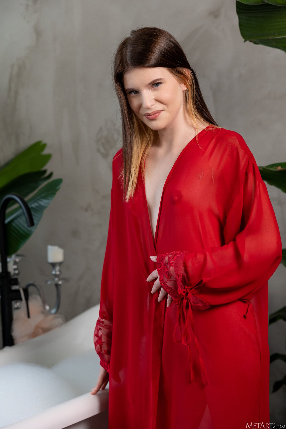 Iskra Nude In Red Robe MetArt Model Gallery